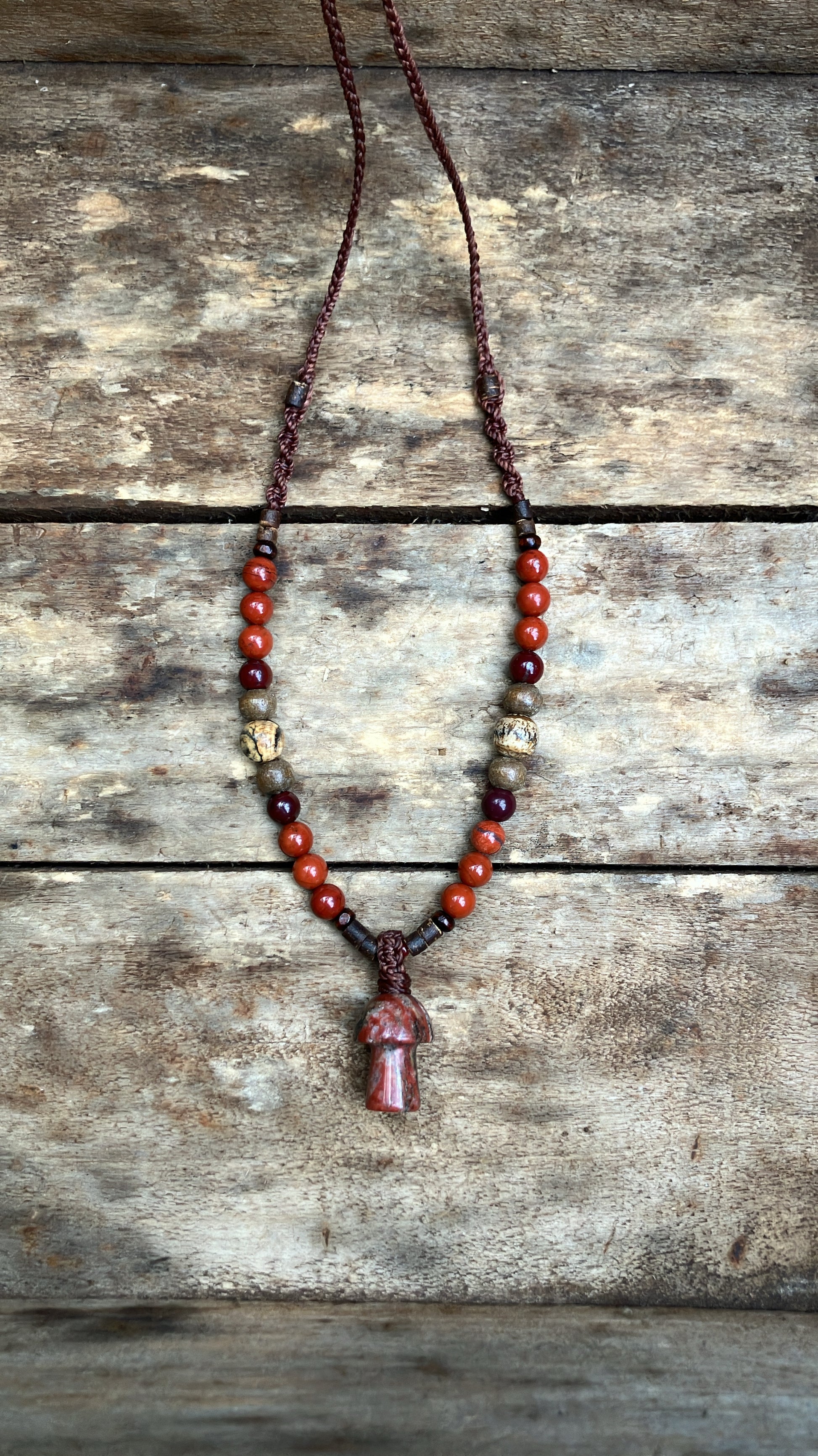 Red Jasper Mushroom Macrame necklace with wooden beads, Mookaite & picture Jasper beading 🍄